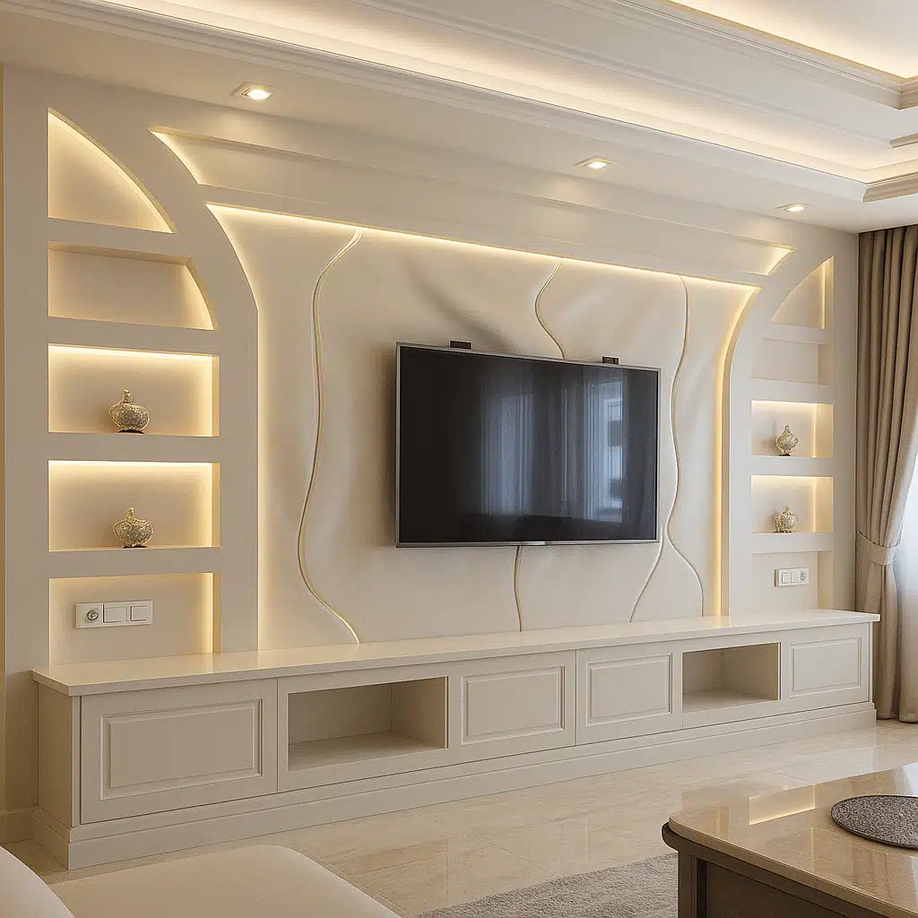 يُستخدم الجبس بورد لإضافة لمسات جمالية مميزة على الجدران، حيث يمكن تنفيذ زخارف ونقوش متنوعة تعزز من جاذبية المكان وتمنحه طابعًا عصريًا وفريدًا.
