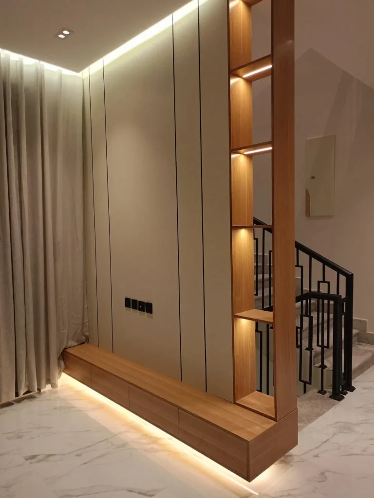 • يعتبر دمج بديل الشيبورد مع الإضاءة المخفية من أجمل اللمسات الديكورية.