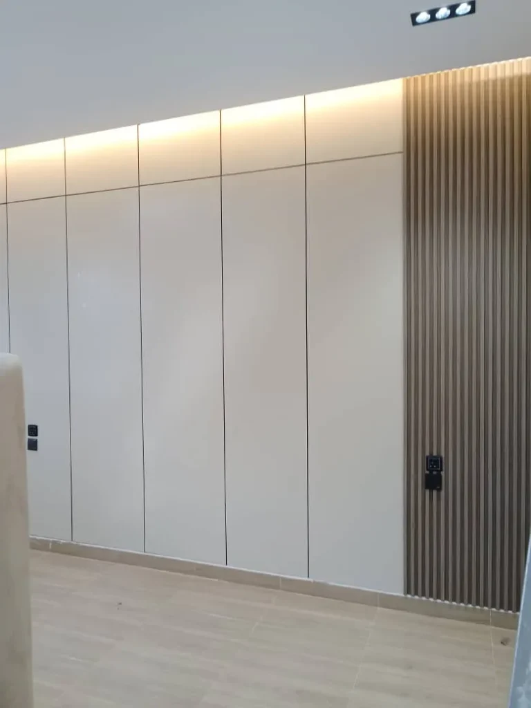 • استخدام بديل الشيبورد لا يقتصر على الجدران فقط، بل يمكن تنفيذه في الأسقف والممرات وغرف الاستقبال ليمنح المكان لمسة راقية