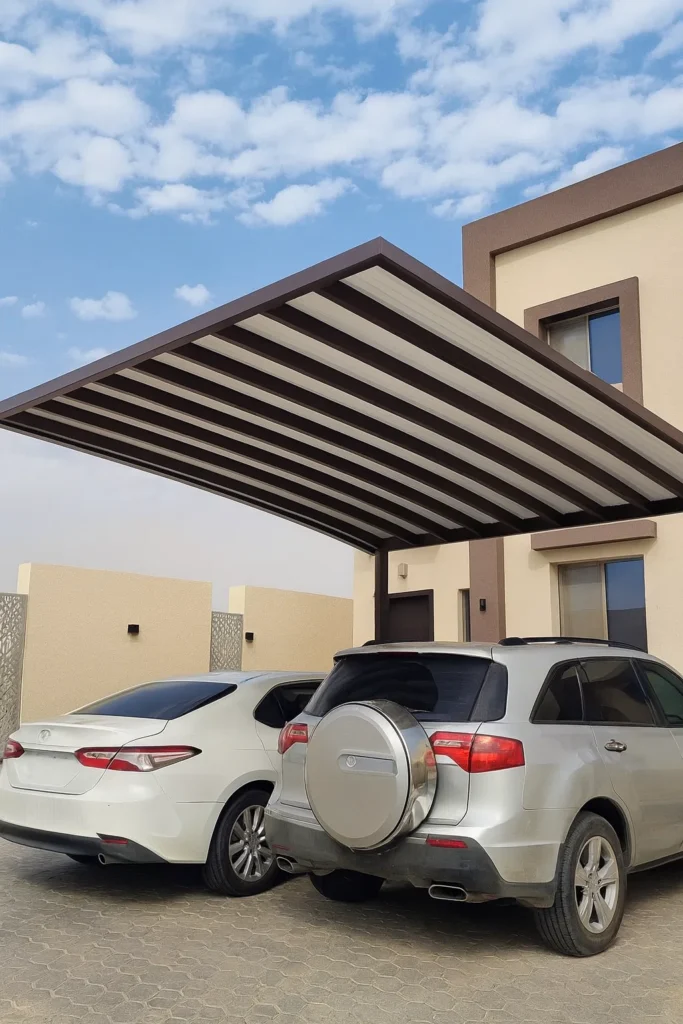 - مظلات السيارات تُعد من أهم خدماتنا، حيث نحمي مركبتك من حرارة الشمس المباشرة ومن الأمطار والغبار، مع تصميم أنيق ينسجم مع واجهة المنزل أو الشركة. نستخدم أفضل أنواع القماش الكوري والبي في سي لضمان الحماية التامة