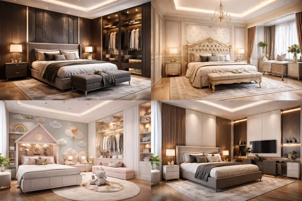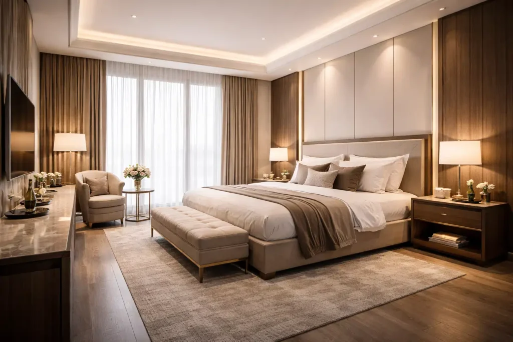 1. غرف النوم الرئيسية (الفخامة والراحة)